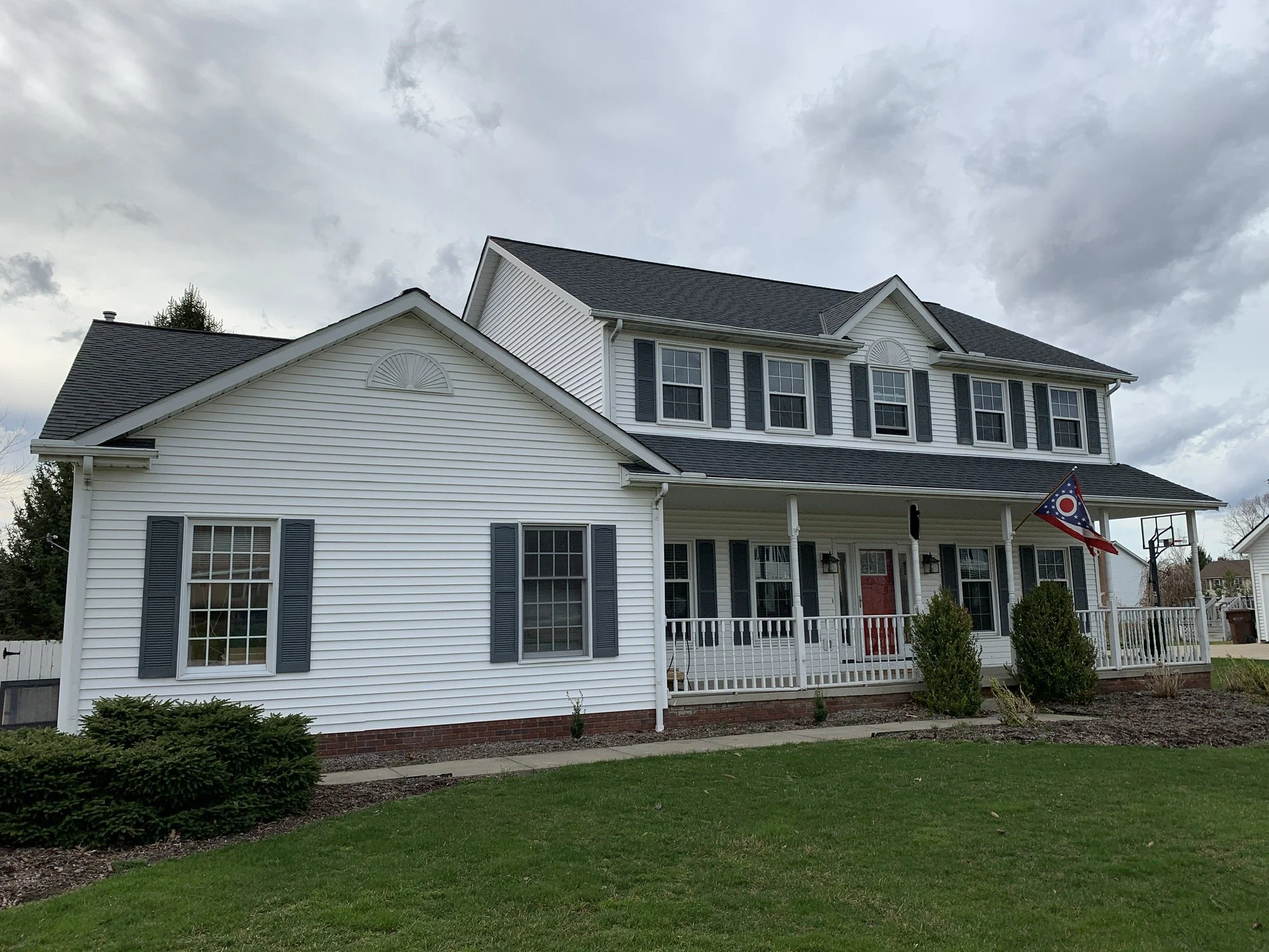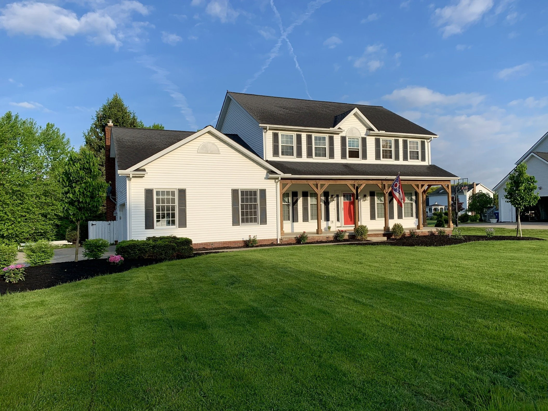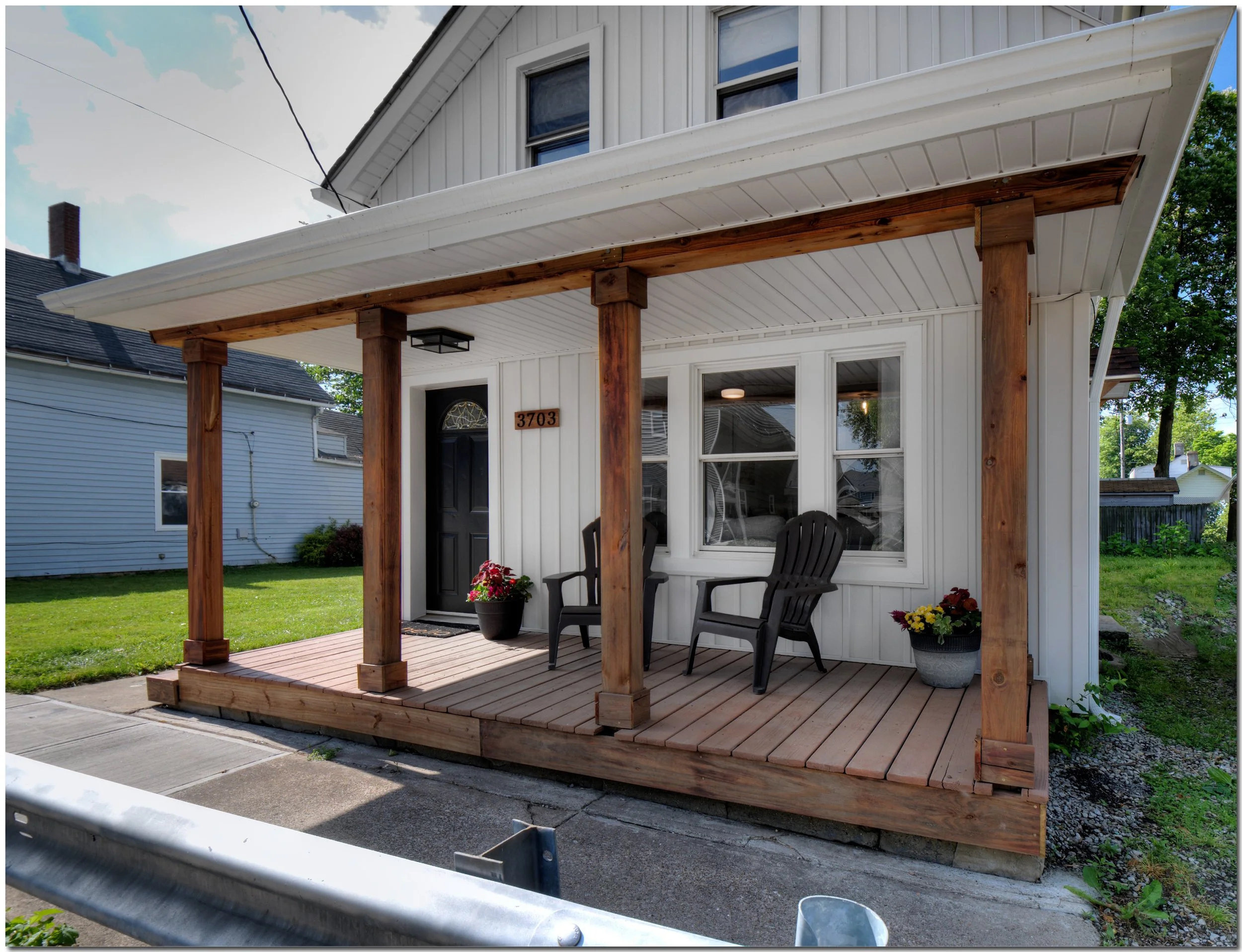 This front porch remodel in 2019 made this home the talk of the neighborhood. Large 4x4 pressure treated columns stained with Cedar colored stain drastically increased the curb appeal of this house. Removing the railings also opened up the front porch for a more inviting and spacious feel.